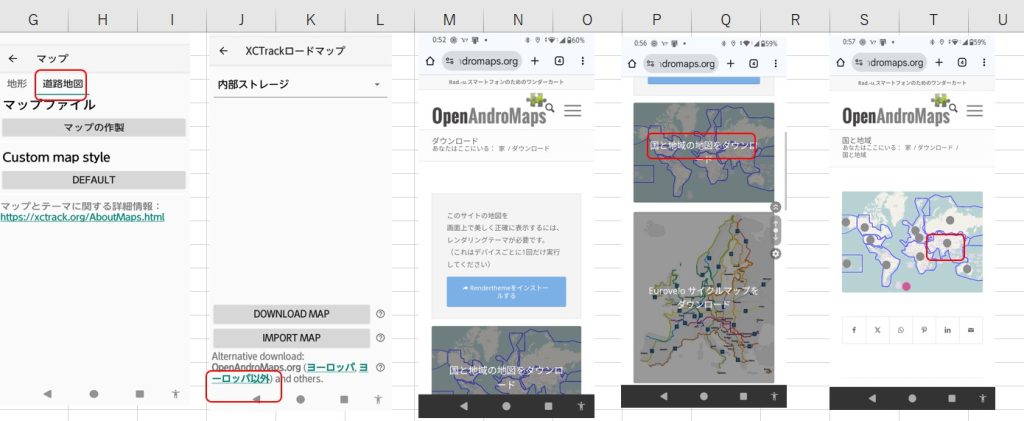 - M,P)OpenAndroMapsのサイトで「国と地域の地図をダウンロード」画面を押下します。