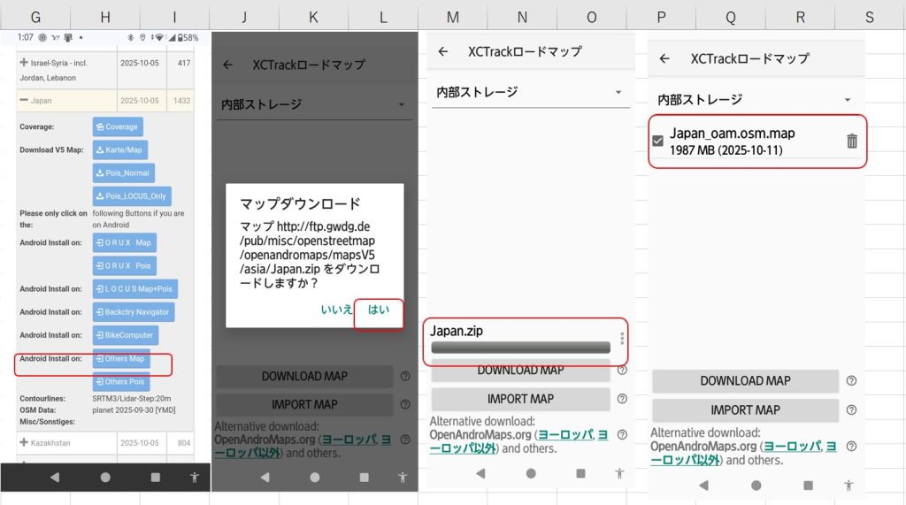 - P)成功すると内部ストレージに日本道路地図が表示されます。
