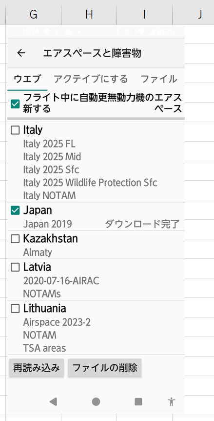 - G)メニュー/設定/エアスペースと障害物を開きます。