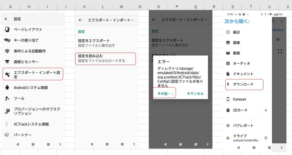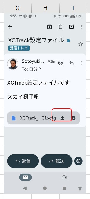 - G)ダウンロードフォルダに保存されている設定ファイルを長押しして選択します。