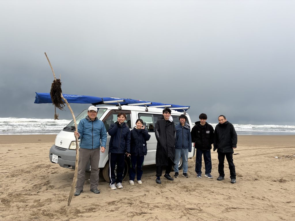 東の風2mくもり、海岸練習を行いました。メンバーはO谷さん、そうご、A見、H場、O島、S籐の6名。風は裏風で微風という斜面練習には不向きな風、内灘フラットランドを利用してカートーイングを実施しました。メンバーはいずれもカートーイング初体験ですが「鳥の巣立ち」練習により翼の特性は体に入って入るはず。ちょっと心配でしたが、なんということでしょう! 見事に離陸したではありませんか!! (ビフォーアフター風)。O島、S籐の1年生は初めての滑空ながらそれなりにコントローが出来ていました。微風・平地・タイヤ・砂地といった組み合わせにより斜面から初滑空するより安全に初滑空を体験できた様です。石川県には色々なタイプの砂浜があるのでレベル・コンディションに合わせた練習が出来る点が素晴らしいですね。